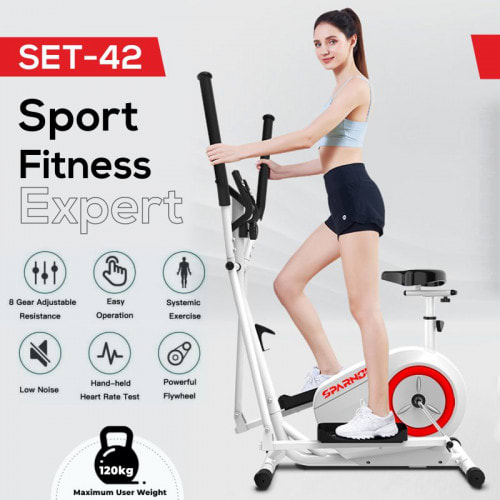 The SET-42 Three In One Sports Fitness Cross Trainer is a high quality, durable and professional fitness equipment. User weight up to 120 KG, The SET-42 features a magnetic resistance system which provides an easy and smooth ride, as well as adjustable stride length and break system that ensures a safe workout. The console features LCD display that allows you to track your progress and monitor your exercise stats.