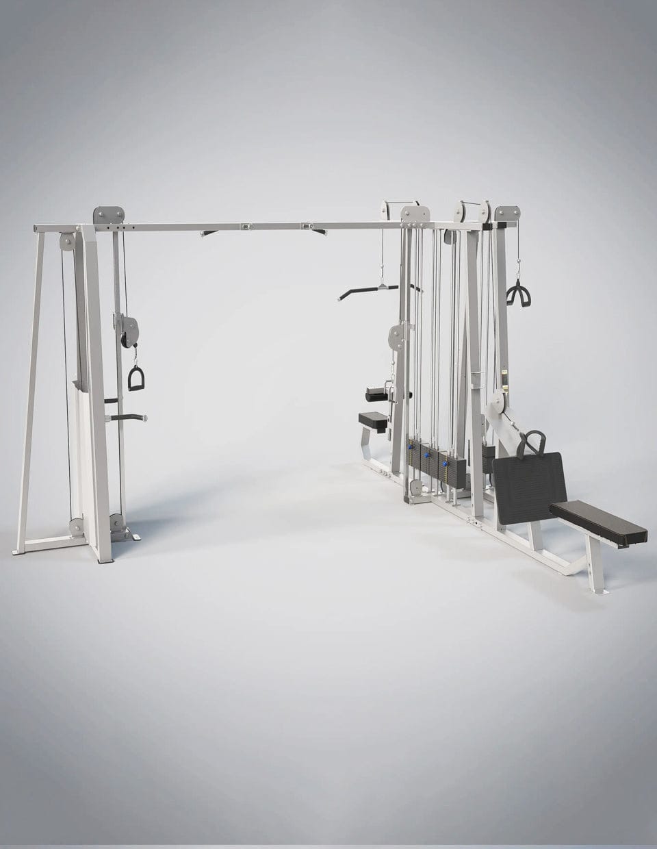 The Evost Series Multi Station 5 Stack has five weight stacks that combine workouts such as Adjustable Crossover, Long Pull, Pull Down, and more, this unit allows you to accommodate more users to train these traditional strength workouts at the same time, but the need of the training space is also larger.
