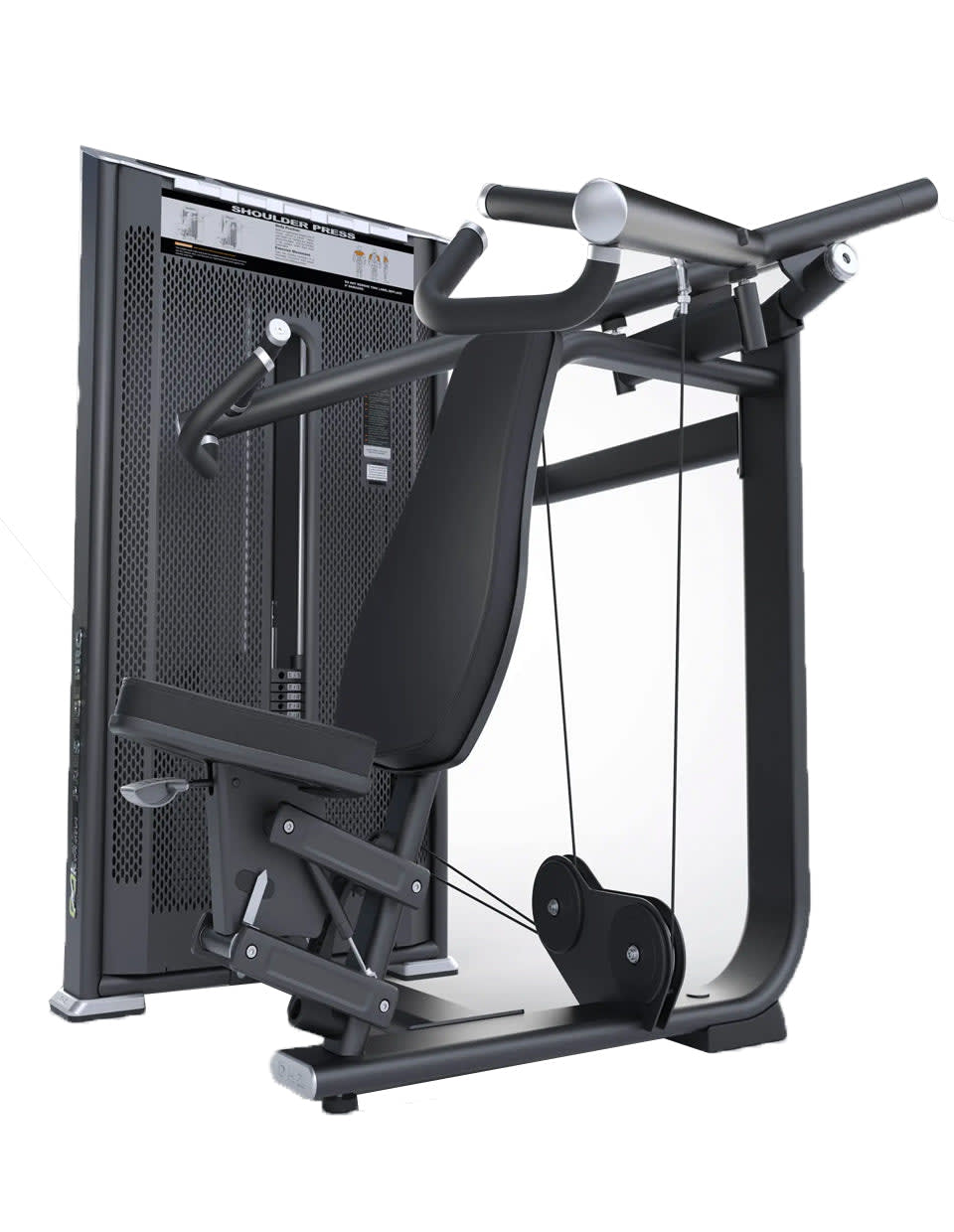 The Prestige Pro Series Shoulder Press offers a new motion trajectory solution that simulates natural motion paths. The dual-position handle supports more training styles, and the angled back and seat pads help users maintain a better training position and provide corresponding support.