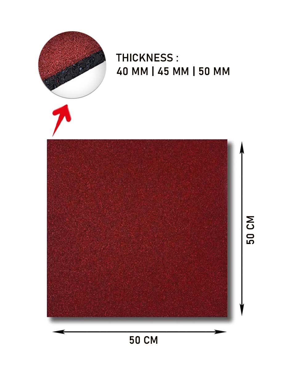 Eco Flex Pro Gym Flooring - 50 x 50 Cm Red