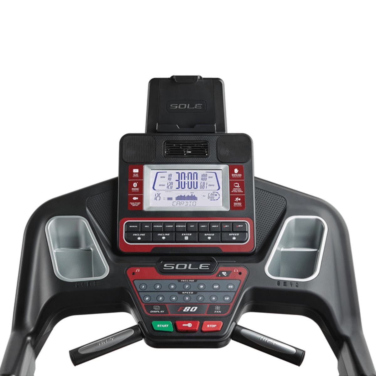The treadmill console is user friendly with a vibrant display. The information that is displayed at all times includes Speed, Incline, Time, Distance Traveled, Calories, Pulse and Pace.