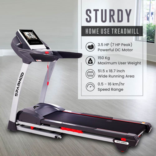 The STH-5950 treadmill is perfect for runners. With 3.5 HP and a 7HP option, this treadmill can handle users up to 150kgs. The 1400X460 running area provides plenty of space to run and the 56X18.4 inch running surface offers great flexibility. The TFT touch screen display offers easy navigation and overall quality is top notch. The life time warranty on the frame and 3 years warranty on the motor.