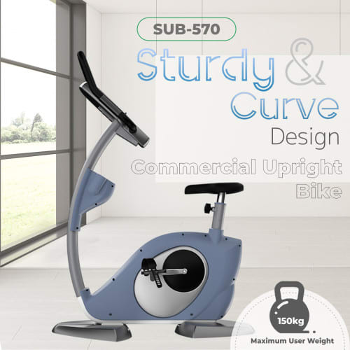 The SUB-570 / F1-8318LB Curve Commercial Upright Bike is perfect for fitness enthusiasts looking to get a high-quality, sturdy bike at an amazing price. With a user weight of 150 kg and a product weight of 58 kg, this bike is perfect for anyone looking for an affordable solution. The bike also comes in silver gray and has self-generator electromagnetic control system that makes it easy to ride. Plus, the seat adjustment allows you to find the perfect riding height.